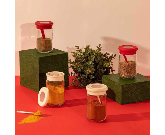 Банка стеклянная Qluх C-00344 красная с пластиковой крышкой и ложкой 370мл