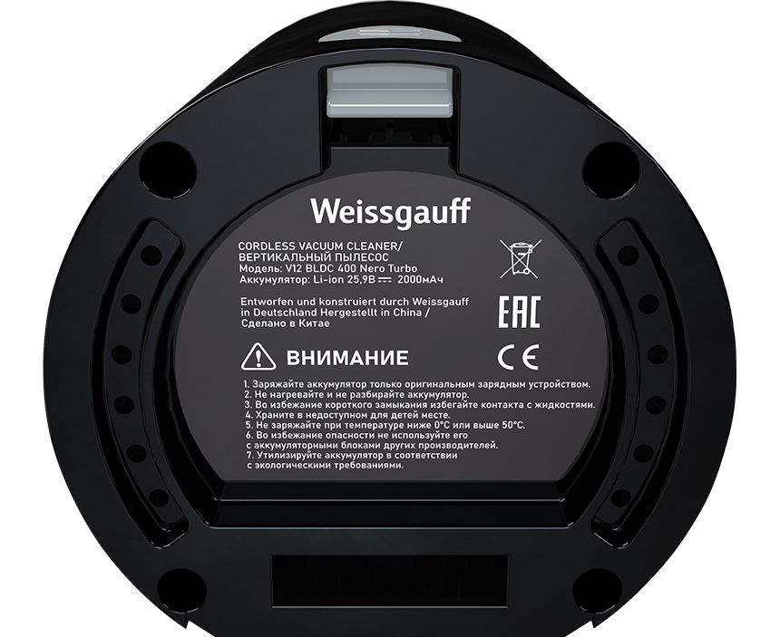 Особенности: Совместимая модель пылесоса: Weissgauff V12 BLDC 400 Nero Turbo