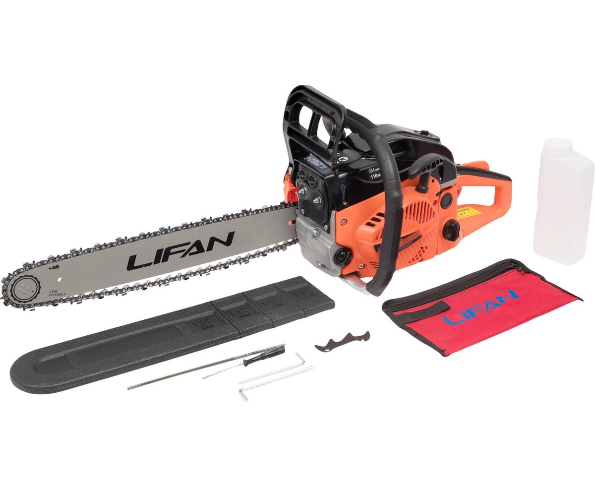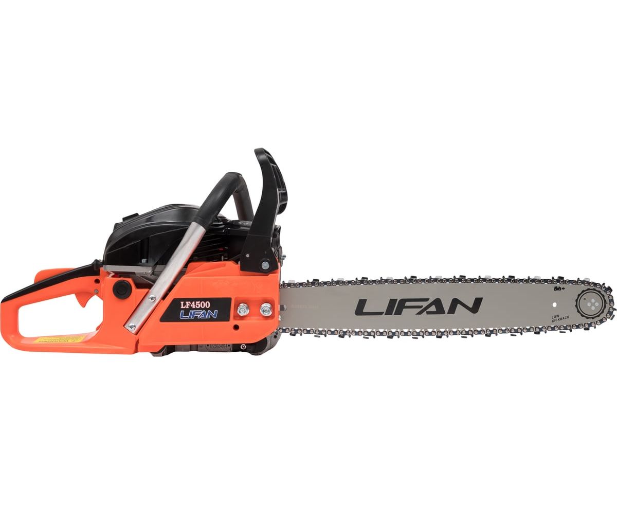 Бензопила LIFAN LF4500 представляет собой надежный инструмент, обладающий мощностью 2.5 лошадиных сил и объемом двигателя 45 см³.