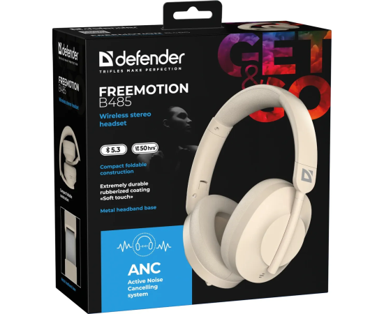 Беспроводная гарнитура DEFENDER FreeMotion B485 бежевый, ANC, Bluetooth 63486