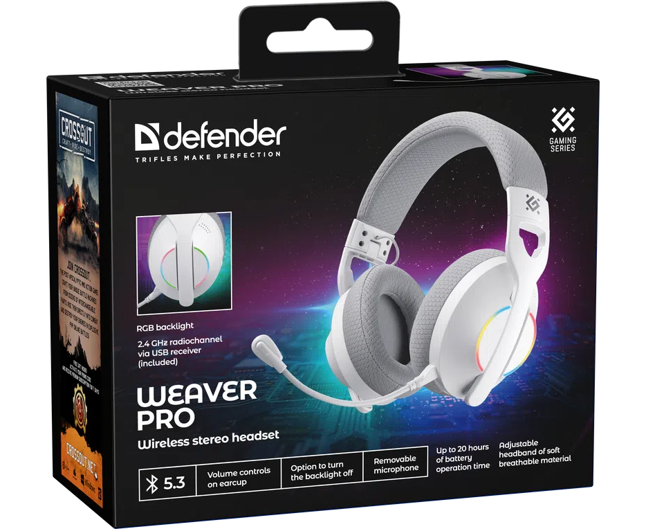 Беспроводная гарнитура DEFENDER Weaver Pro BT/2.4G, белый 62550