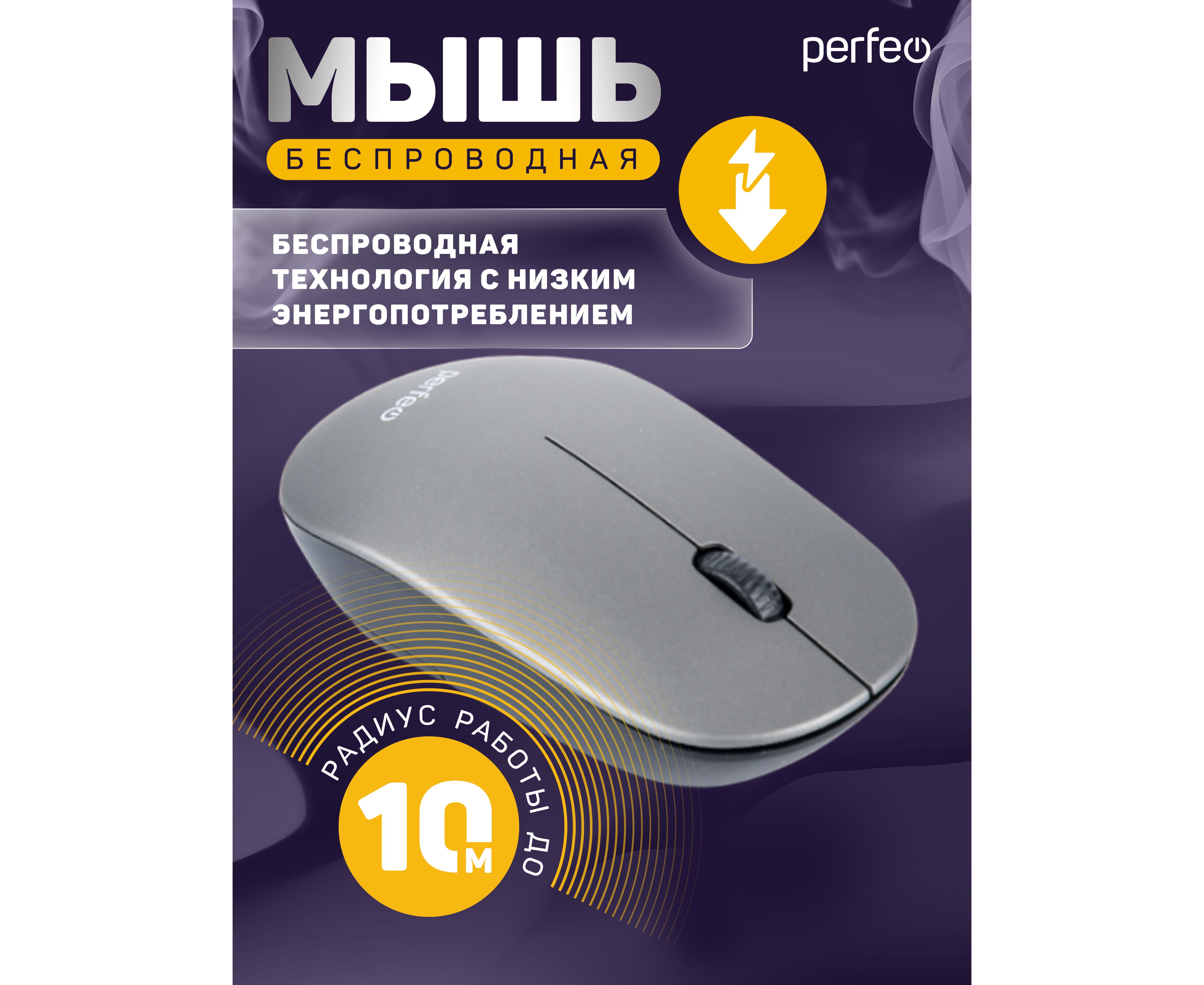 Беспроводная мышь Perfeo, оптич. "TREND", 3 кн, DPI 1200, USB, серебро, (Арт. PF_B4906)