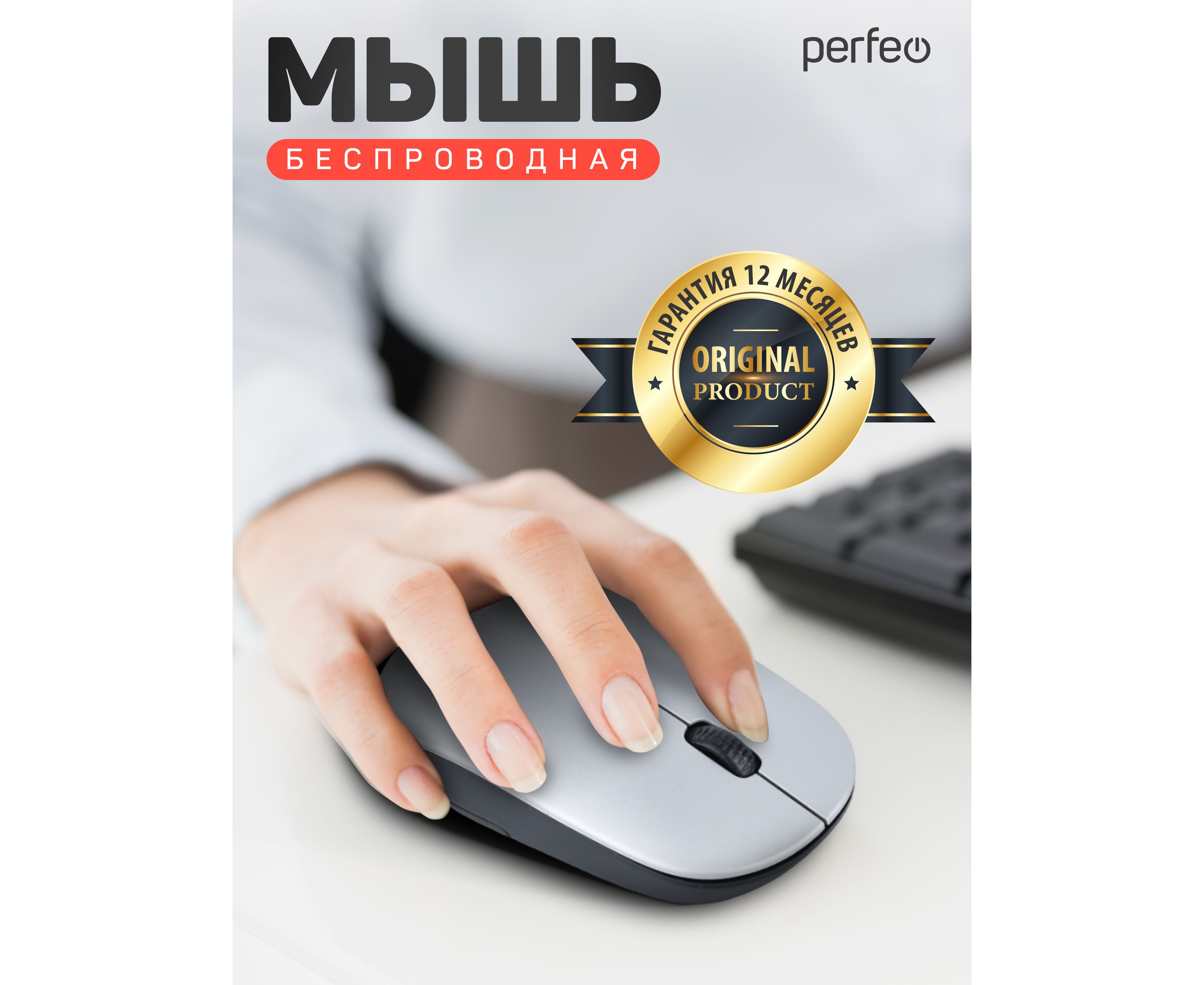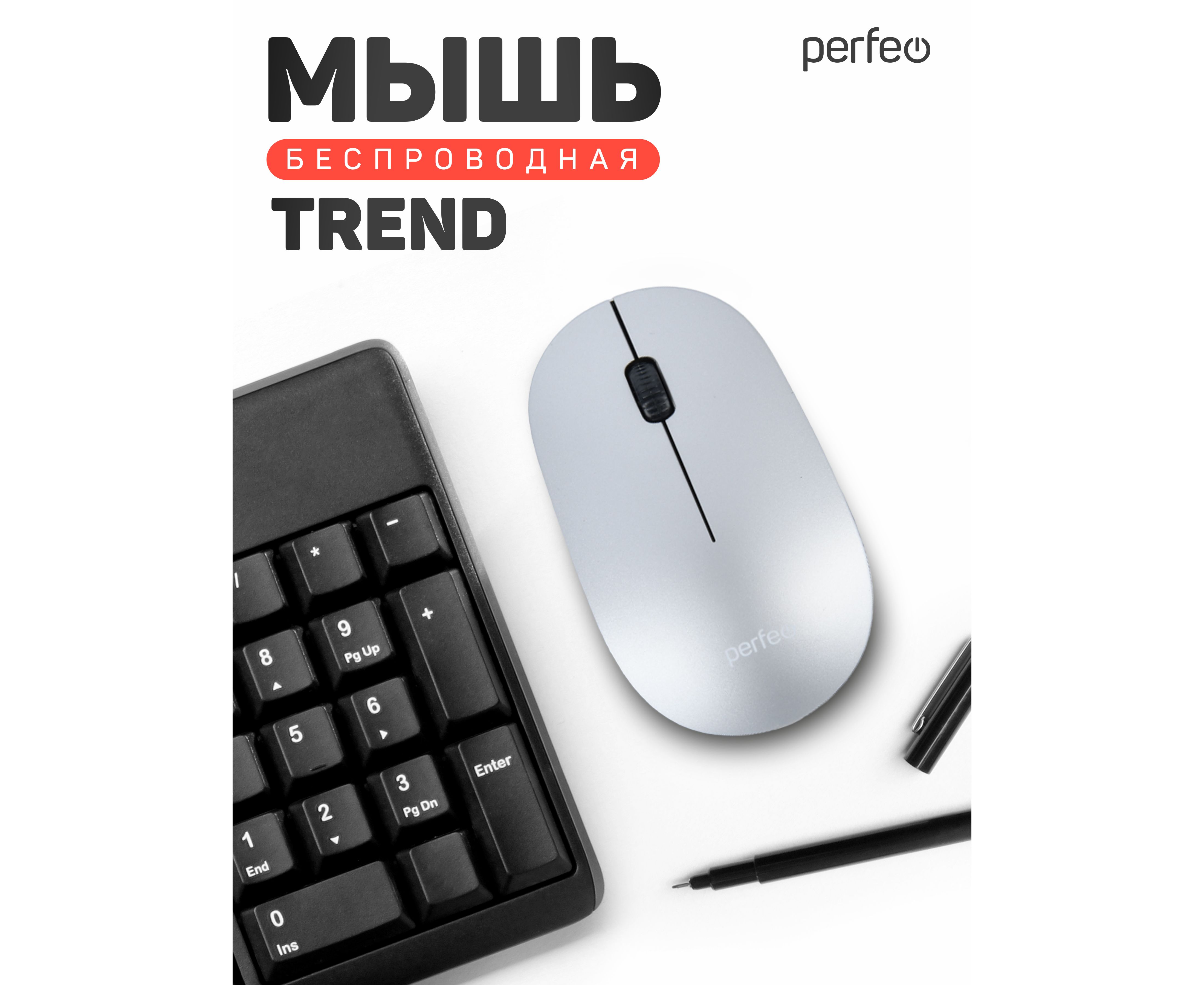 Беспроводная мышь Perfeo, оптич. "TREND", 3 кн, DPI 1200, USB, серый, (Арт. PF_B4907)