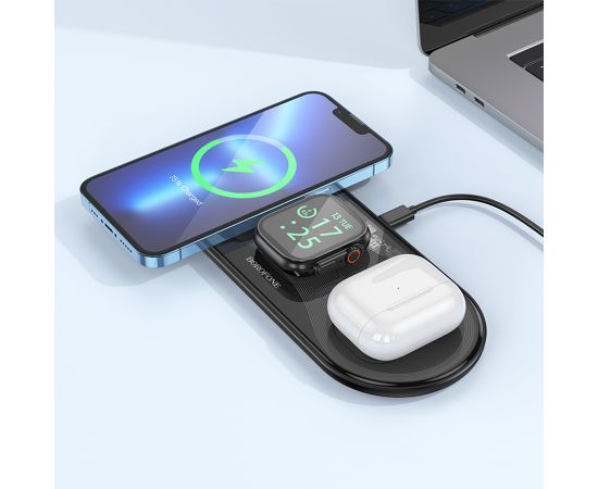 Беспроводное зарядное устройство BOROFONE BQ19 Powerful 3-in-1 для iPhone+Airpods+Apple Watch, 3A, 5W/7.5W/10W/15W, черный