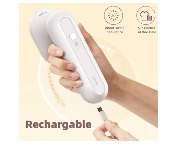 Комплектация: мини-утюг, зарядный кабель, силконовая накладка, флакон для воды, чехол