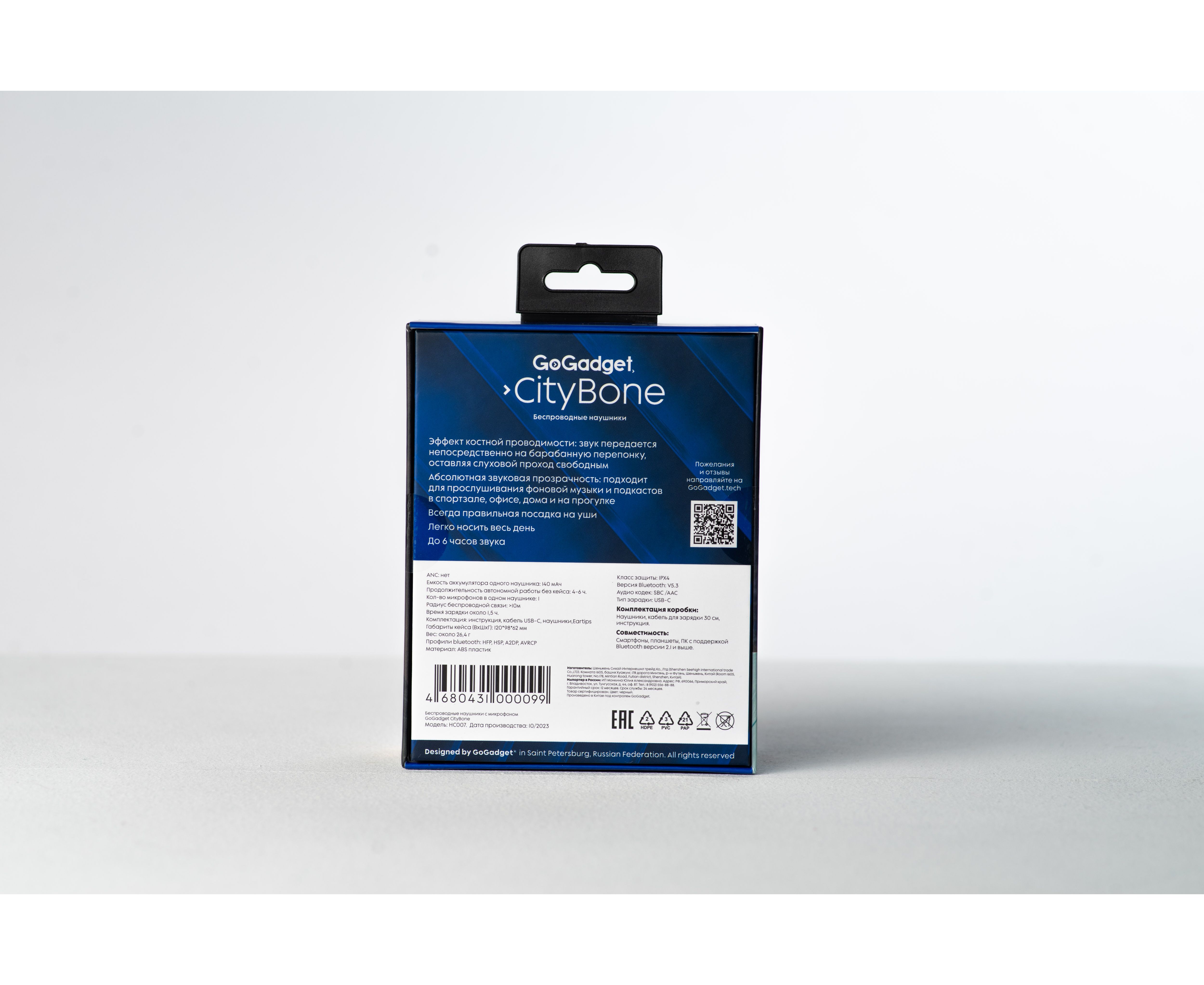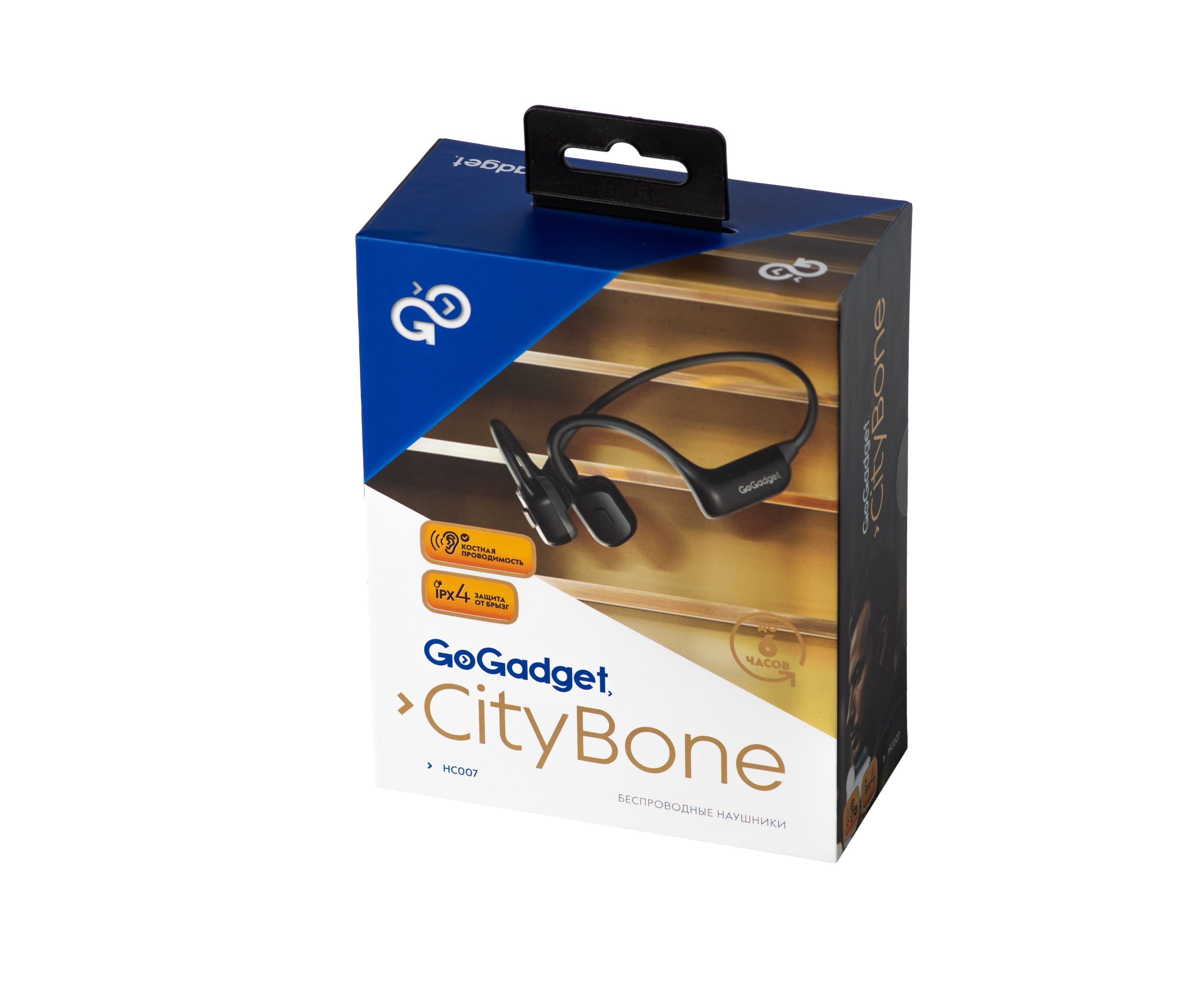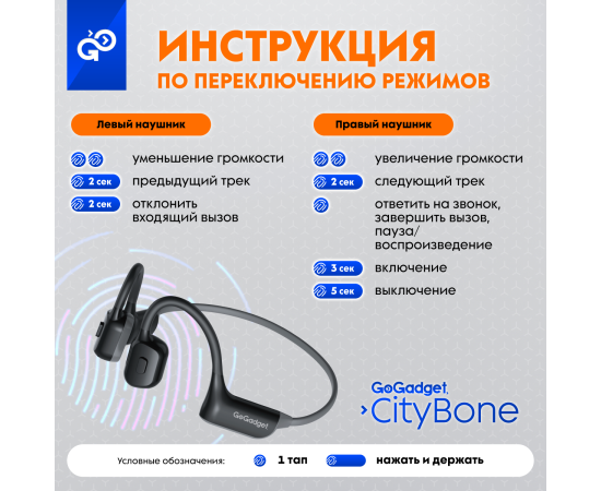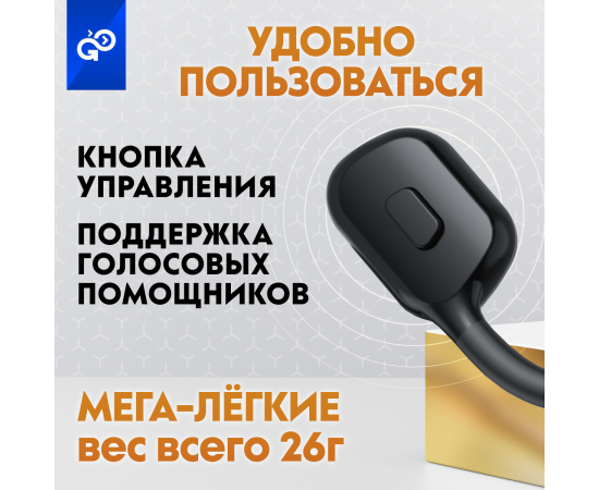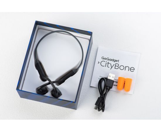 Беспроводные наушники GoGadget CityBone, зашейная дуга, костная проводимость, 1 микрофон, 140 мАч, до 7 часов, ЧЕРНЫЙ