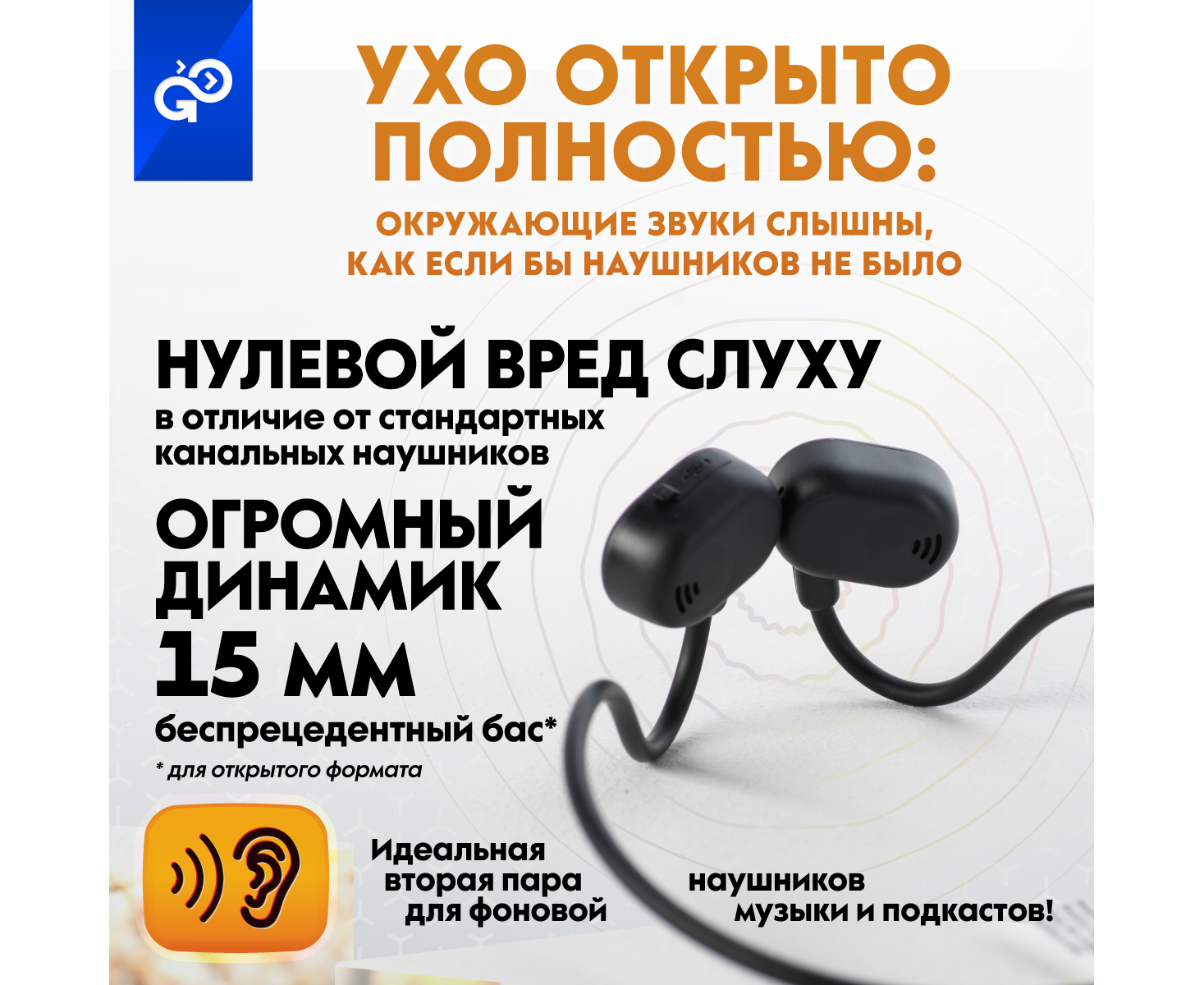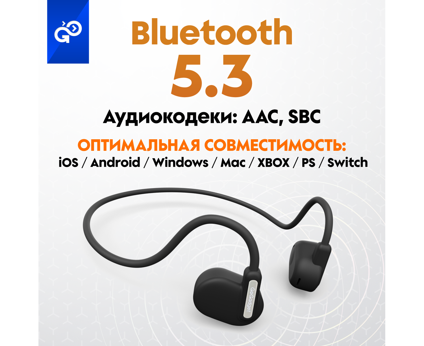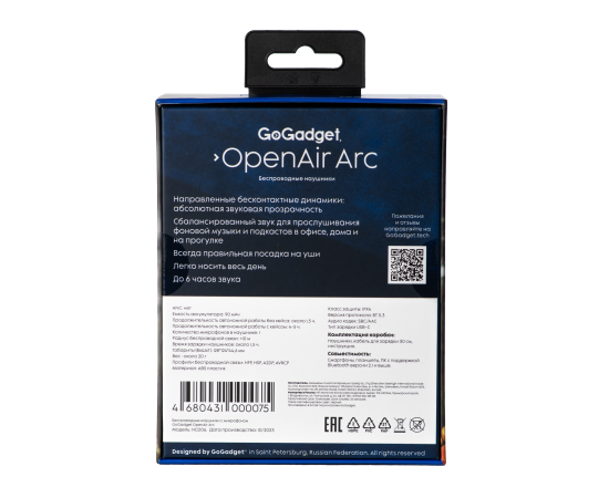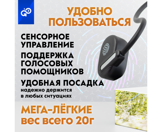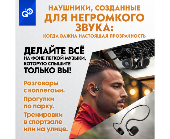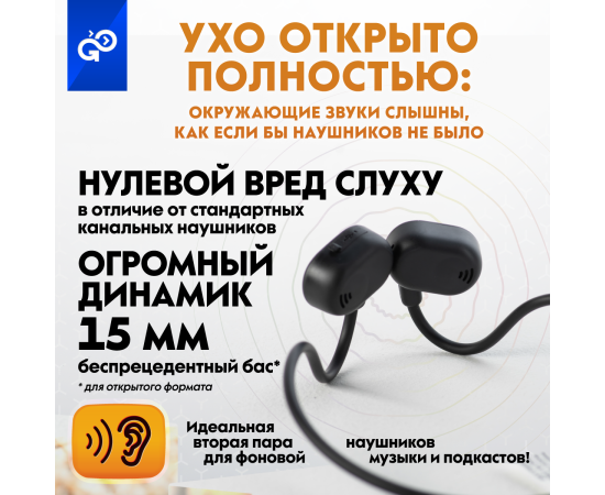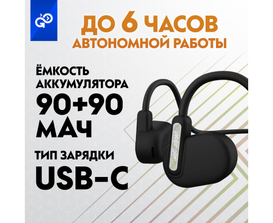 Беспроводные наушники GoGadget OpenAir Arc, зашейная дуга, открытый динамик, 1 микрофон, 90 мАч, до 6 ч ЧЕРНЫЙ