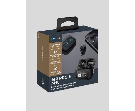 Беспроводные наушники с микрофоном Air Pro 3 ANC, TWS, BT 5.3, 350 мАч, ANC, LCD, черный, Deppa
