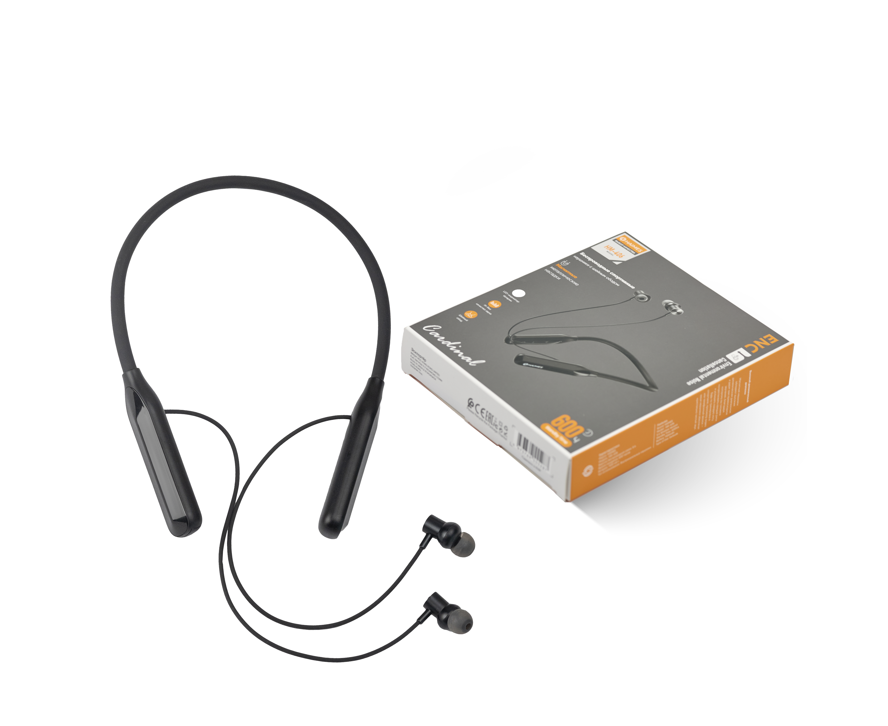 Беспроводные наушники с шейным ободом.