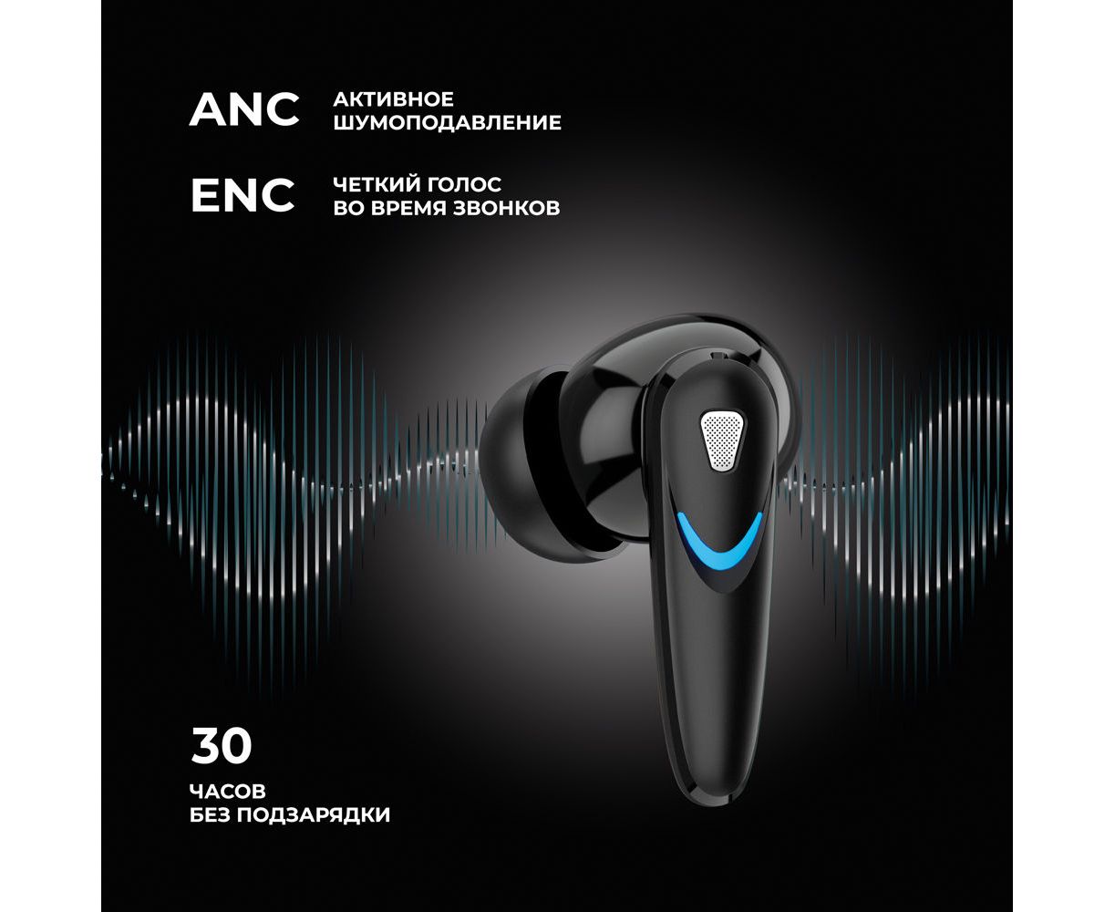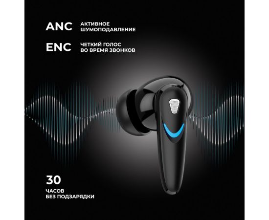 Беспроводные наушники с микрофоном Air Blade, TWS, BT 5.4, ANC, Gaming, 470 мАч, черный, Deppa