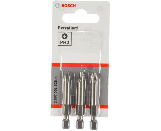 Бита BOSCH 2.607.001.528 является насадкой для шурупов с крестовым шлицем Phillips, следовательно обеспечивается наилучшая передача усилия от насадки к шурупу. Эти биты имеют исполнение Extra Hart. В комплекте 3 штуки.