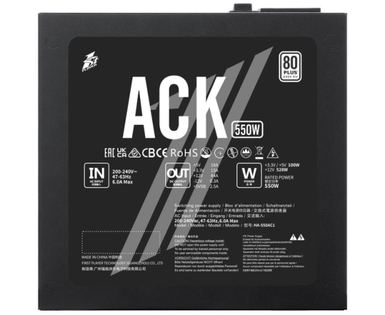 Блок питания 1STPLAYER ACK (HA-550AC1) 550W Black / ATX 2.4, APFC, 80 Plus Standard, Double Forward, 140mm fan, non-modular