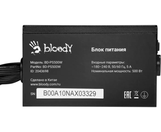 Блок питания BLOODY BD-PS500W, 500Вт, 120мм, черный, retail