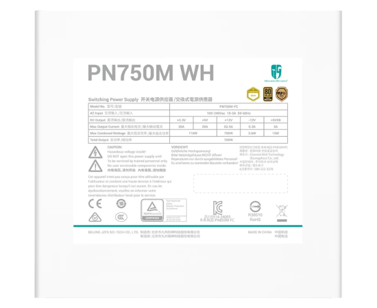 Блок питания Deepcool GamerStorm PN750M WH (ATX 3.1, 750W, Full Cable Management, PWM 120mm fan, Active PFC, 80+ Gold, Active PFC + Full Bridge SRC LL