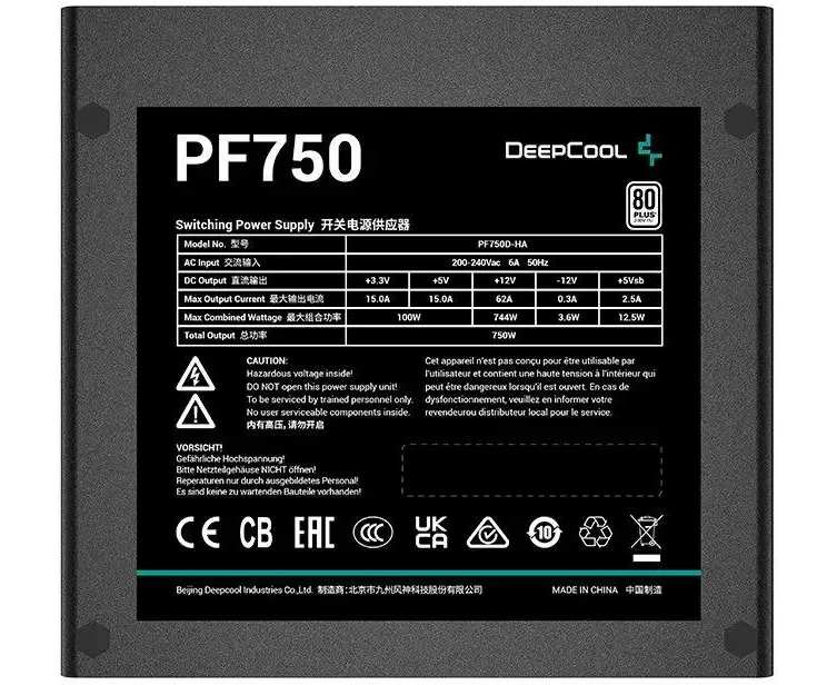 Блок питания Deepcool PF750 (R-PF750D-HA0B-EU) 750w, 80 Plus (711605)