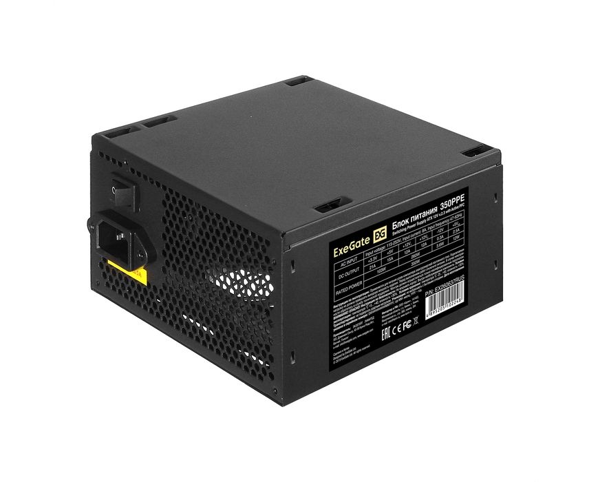 Блок питания Exegate 350PPE EX260637RUS-PC 350W (ATX, APFC, PC, КПД 80 (80 Plus), 12cm fan, 24pin, (4+4)pin, PCIe, 5xSATA, 3xIDE, black