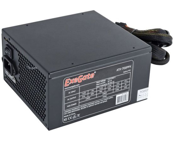 Блок питания Exegate EX220362RUS 700PPX RTL, ATX, black, active PFC, 14cm,20+4pin/4+4pin/PCI-E/4IDE/5SATA