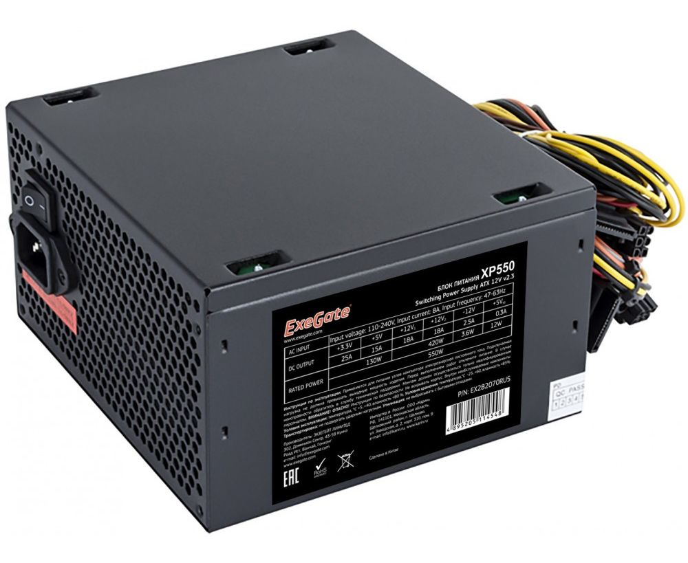 Блок питания Exegate XP550 EX282070RUS-PC 550W (ATX, PC, 12cm fan, 24pin, 4pin, PCIe, 3xSATA, 2xIDE, black, кабель 220V в комплекте)
