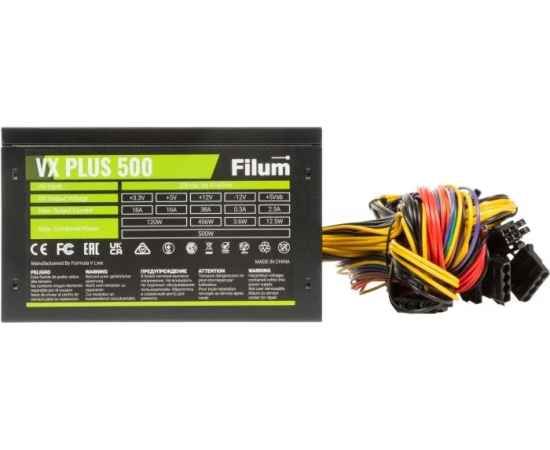 Блок питания Filum VX Plus 500 500W ATX (20/24+4+3 SATA+3 PATA+6/8 pin, вентилятор d120мм)