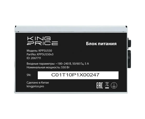 Блок питания KINGPRICE KPPSU550 (KPPSU550V3), 550Вт, 120мм, серый