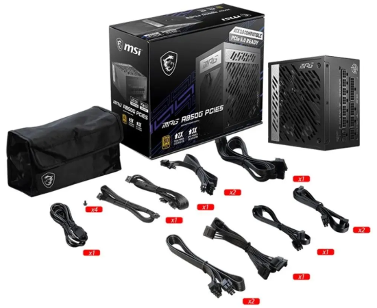 Блок питания MSI MPG A850G (306-7ZP7B11-CE0) ATX 850W 80+ gold 24pin APFC 135mm fan 8xSATA Cab Manag RTL