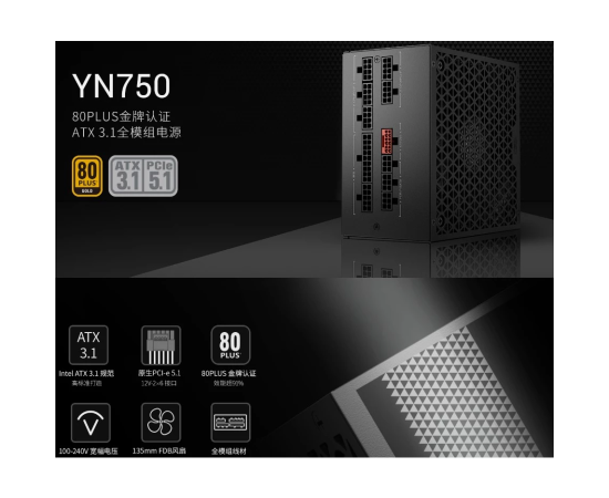 Блок питания PcCooler P5-YN750-G1F 750W 80+ Gold ATX, 3.1, PCIe 5.1 600W, Full modular, 1x24(20+4)pin 550mm, 2xCPU 8(4+4)pin 650mm