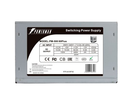 Блок питания POWERMAN PM-500ATX (6118742) 500WATX2.2, Active PFC 80+, 12cm Fan OEM