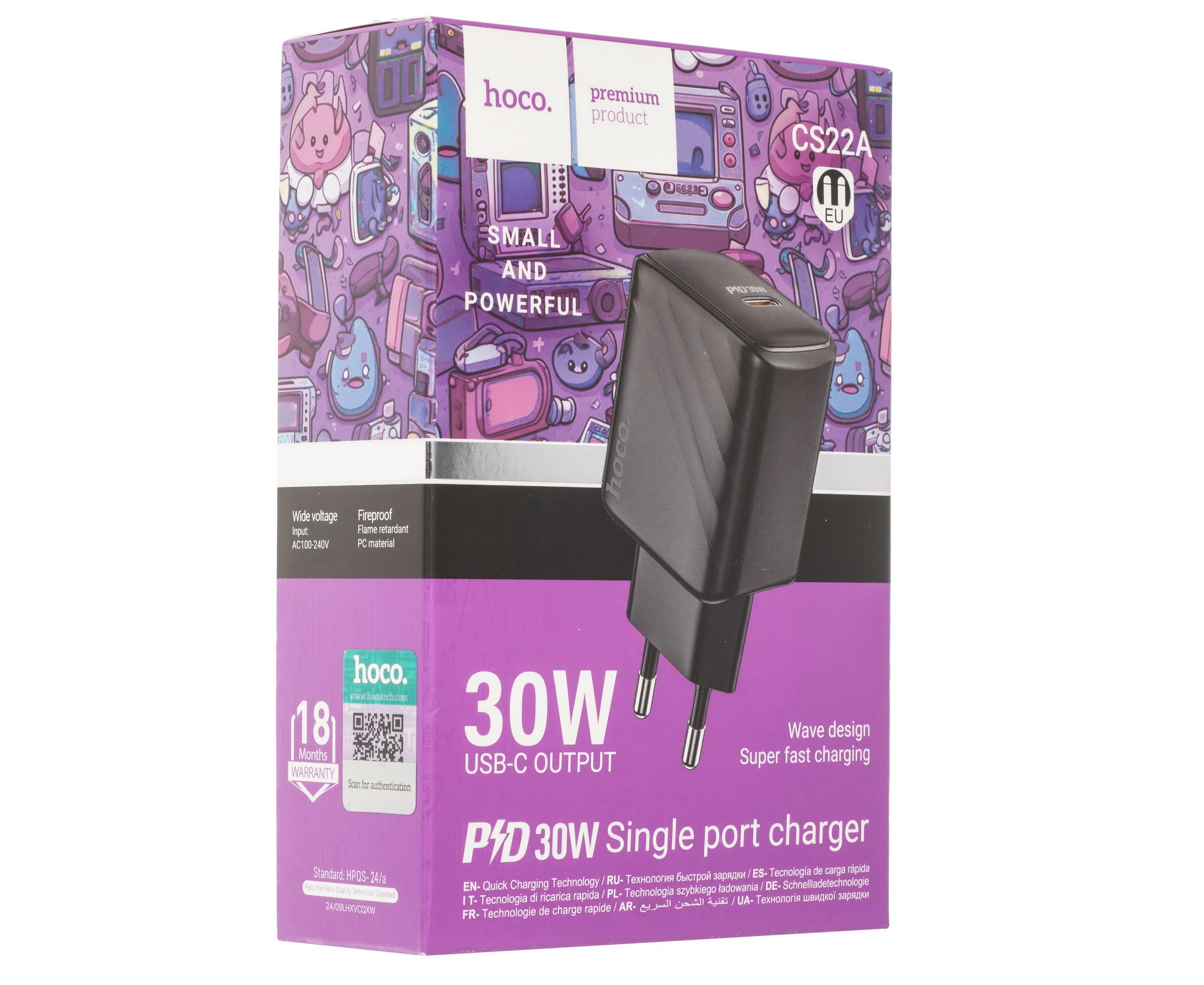 Блок питания сетевой 1 Type-C HOCO CS22A Value, 3000mA, пластик, QC3.0, PD30Вт, цвет: чёрный (1/32/192)