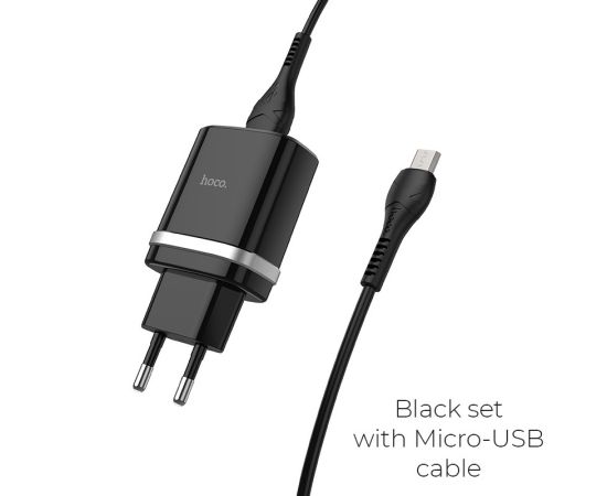 Блок питания сетевой 1 USB HOCO C12Q, 3000mA, пластик, QC3.0, кабель микро USB, цвет: чёрный (1/10/100)