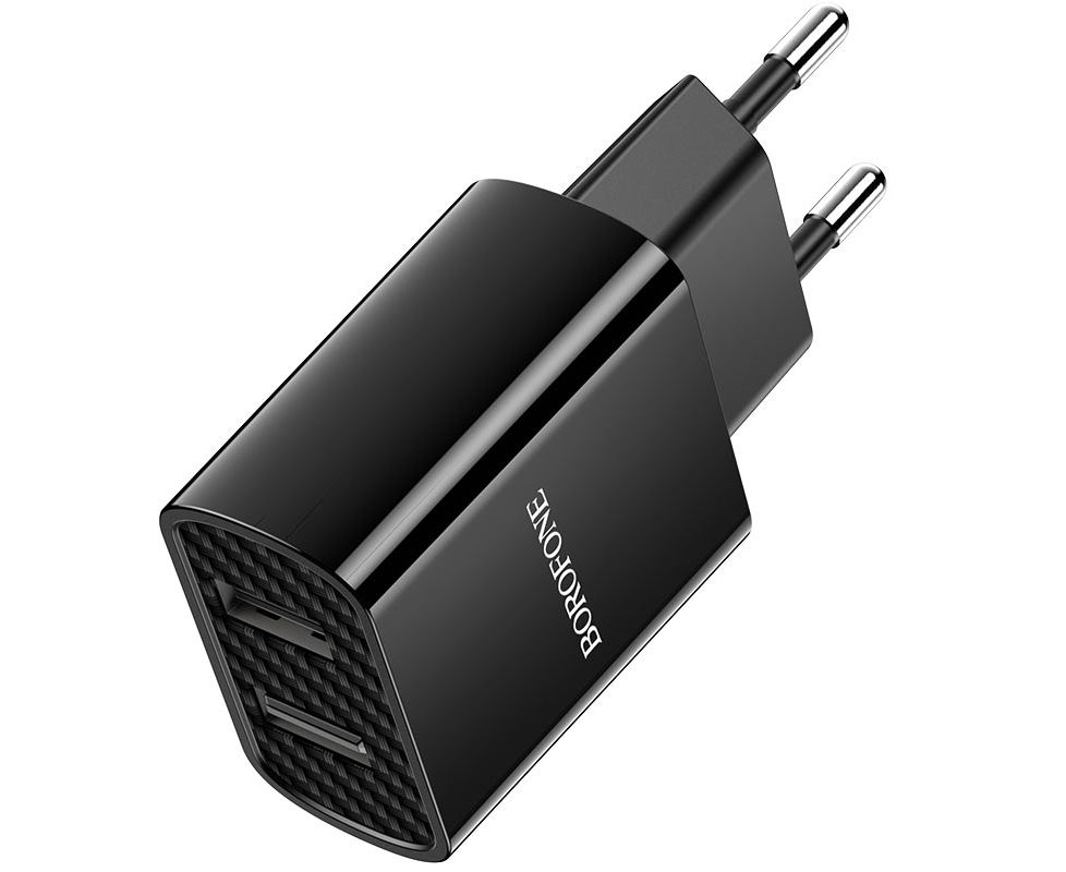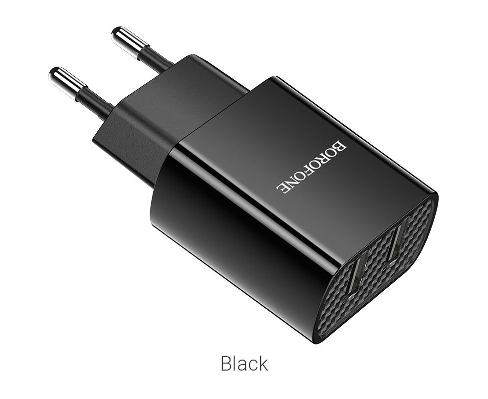 Блок питания сетевой 2 USB Borofone, BA53A, Powerway, 2100mA, пластик, цвет: чёрный(1/65/260)