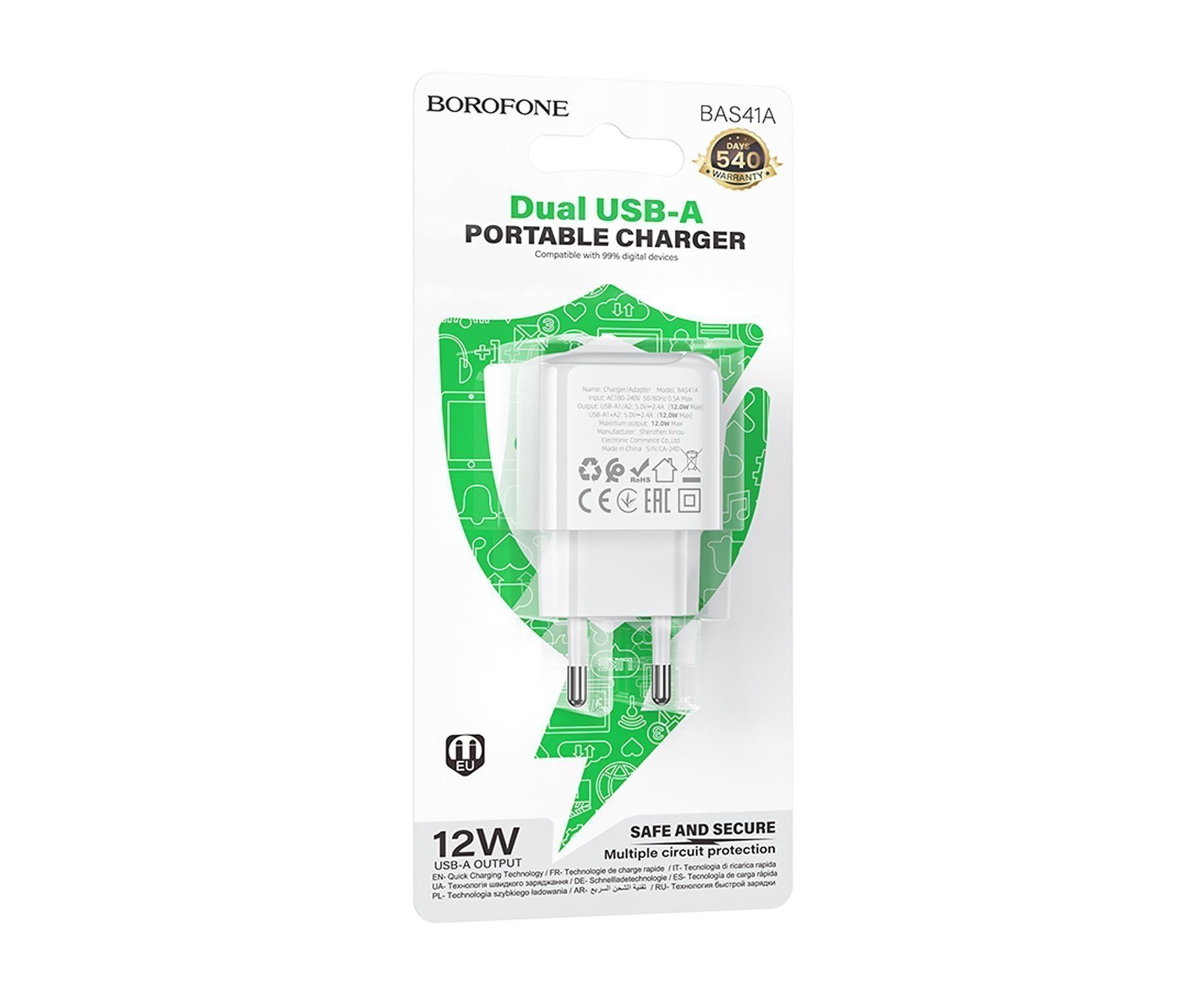 Блок питания сетевой 2 USB Borofone BAS41A Potential, пластик, цвет: белый (1/76/304)
