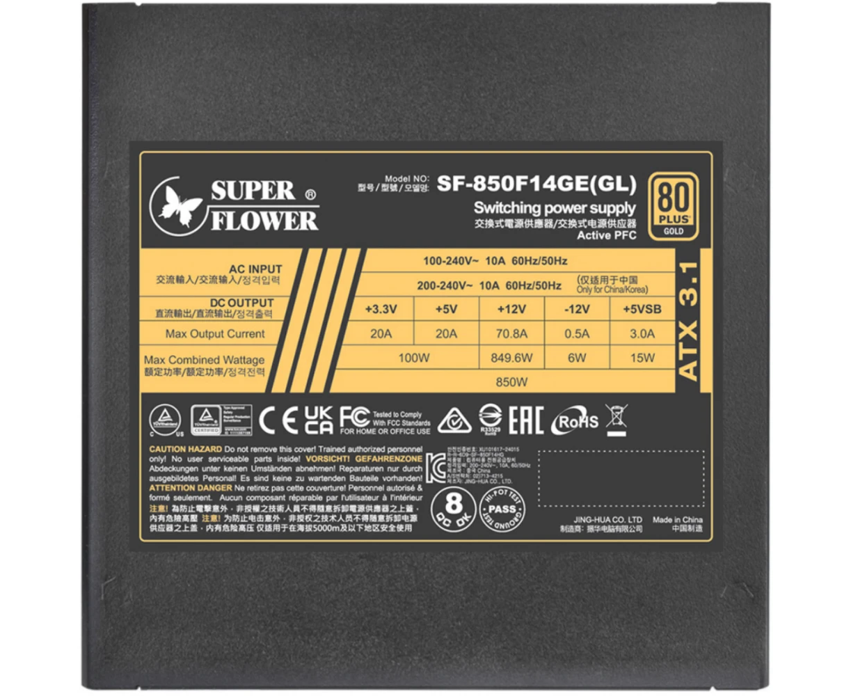 Блок питания Super Flower Leadex III Gold (SF-850F14GE(GL)) 850 Ватт, ATX 3.1, 140mm, 8xSATA, 3xPCI-E(6+2), 1x12VHPWR(12+4), APFC