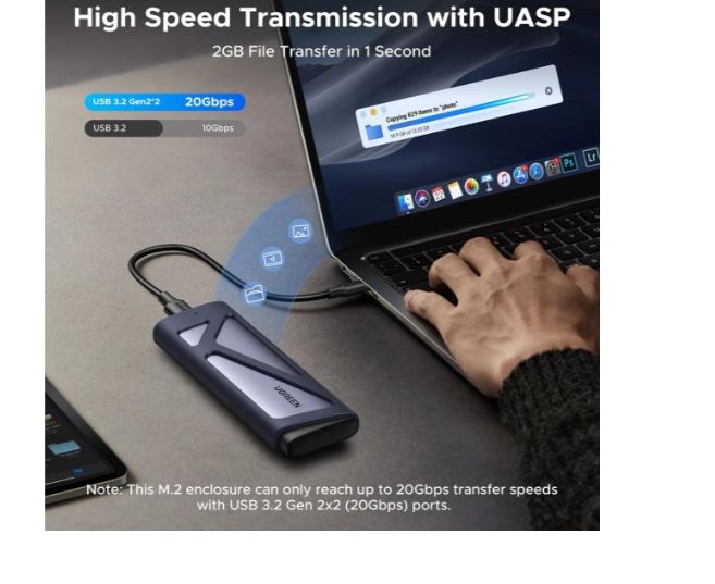 Бокс внешний для жесткого диска UGREEN CM767 (55150) M.2 NVMe/SATA SSD Enclosure 20Gbps Space Gray