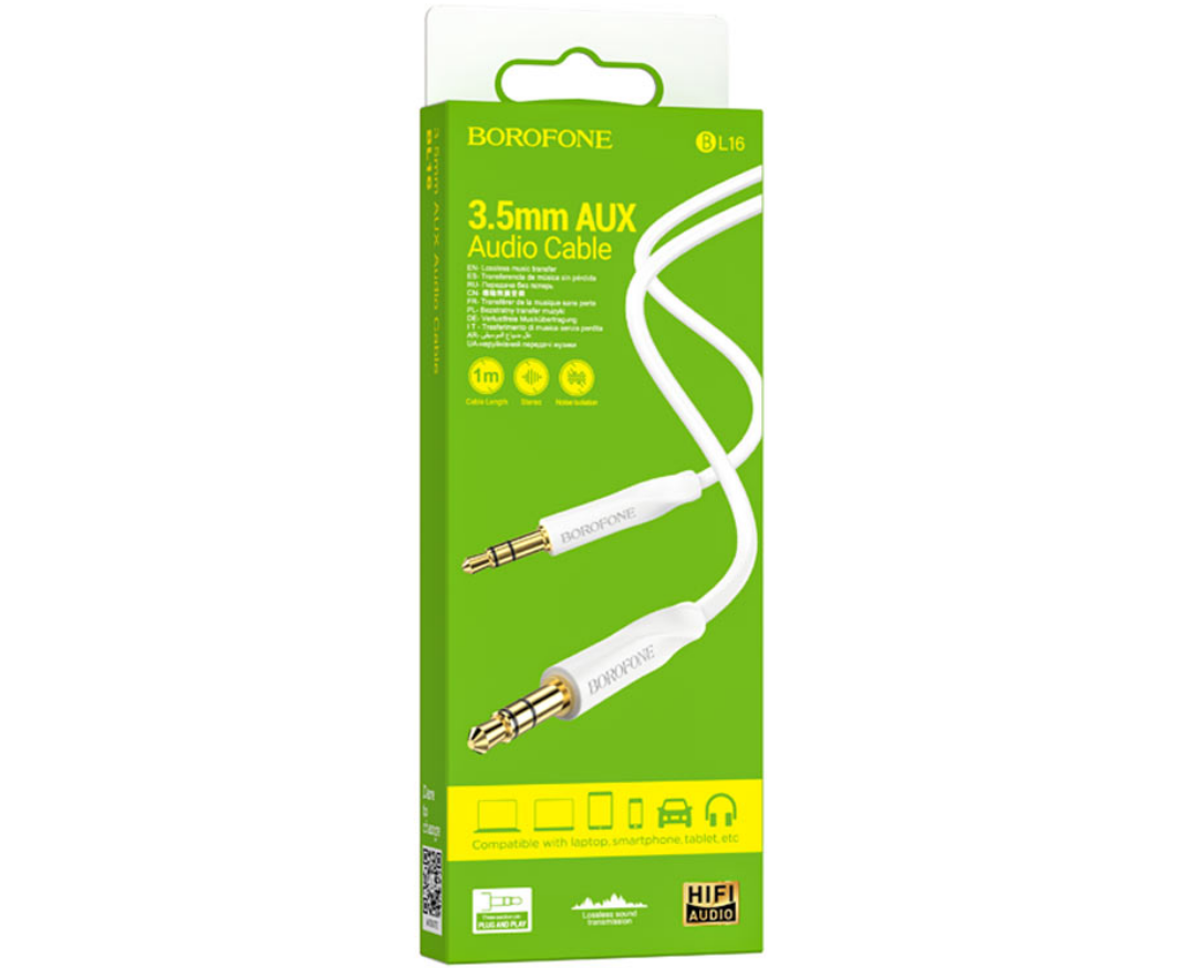 Аудио кабель BOROFONE BL16/ AUX/ 3.5 mm jack - 3.5 mm jack/ 1m/ Белый