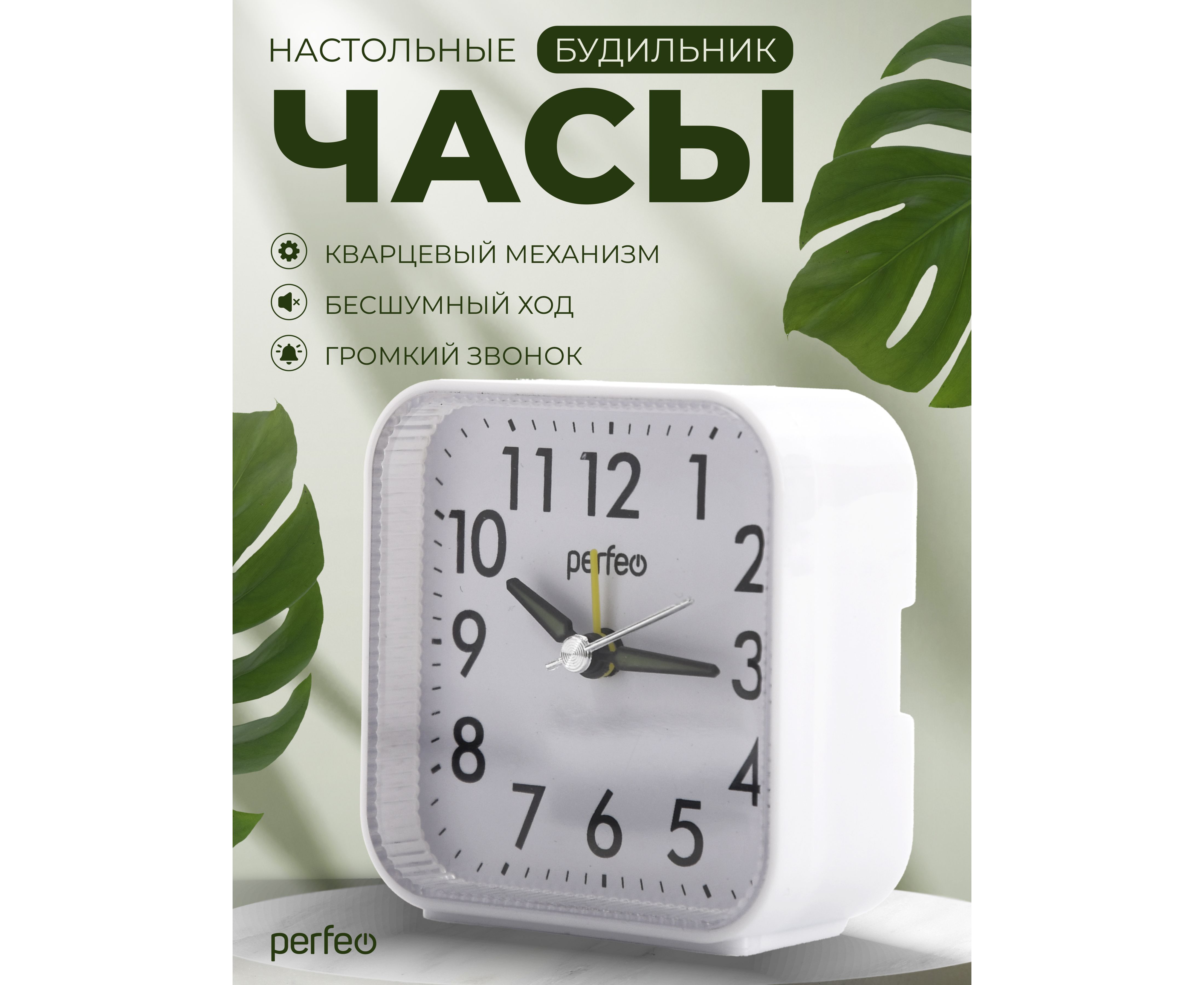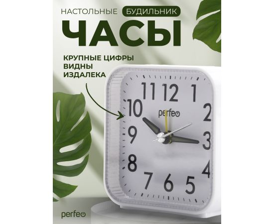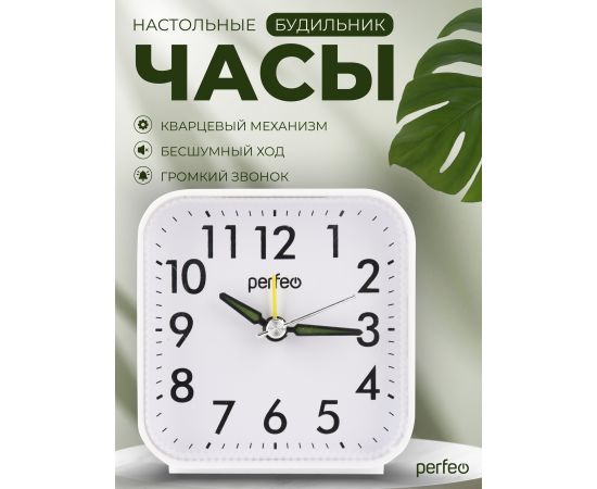 Часы-будильник Perfeo "PF-TC-022", квадратные, белые