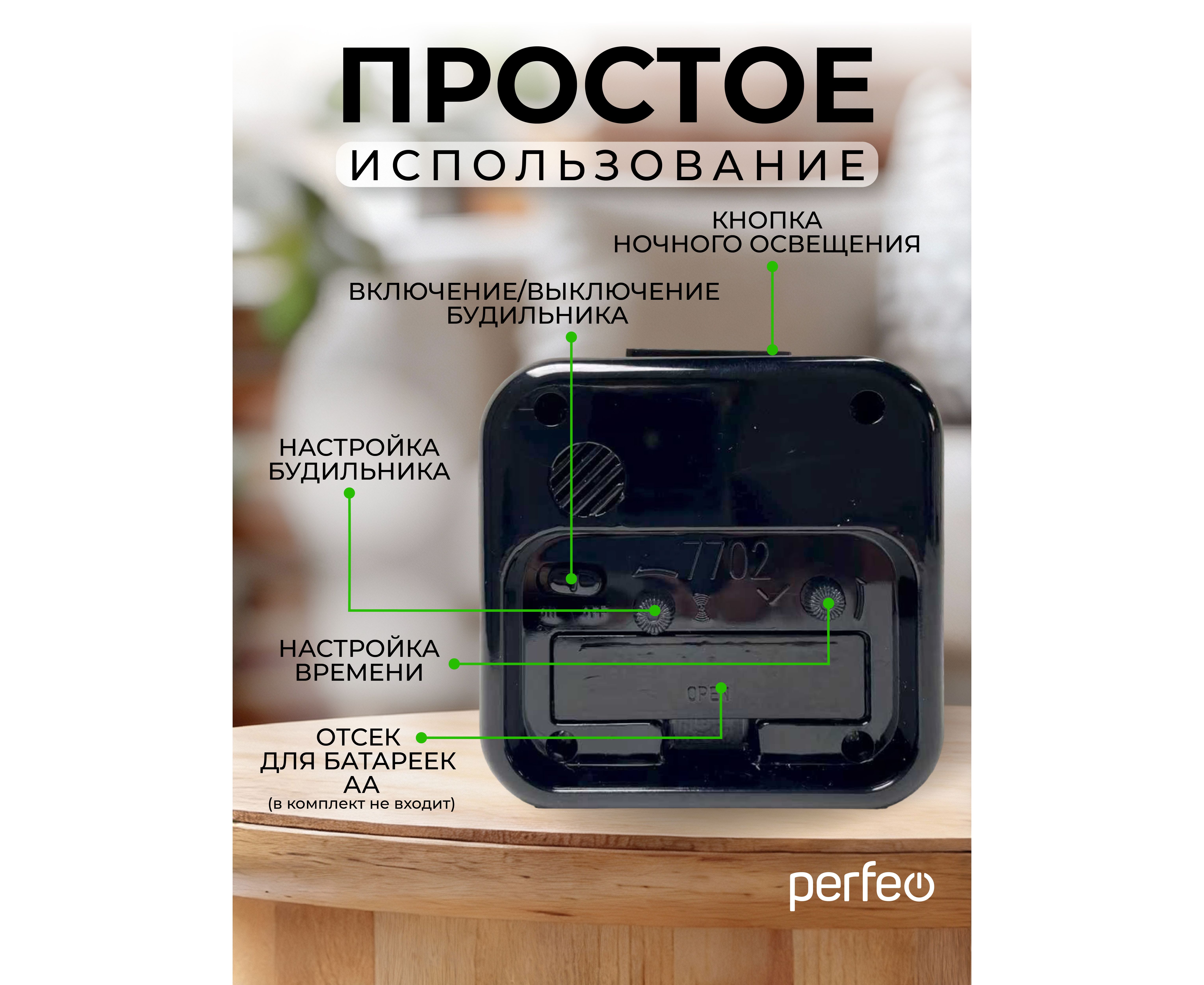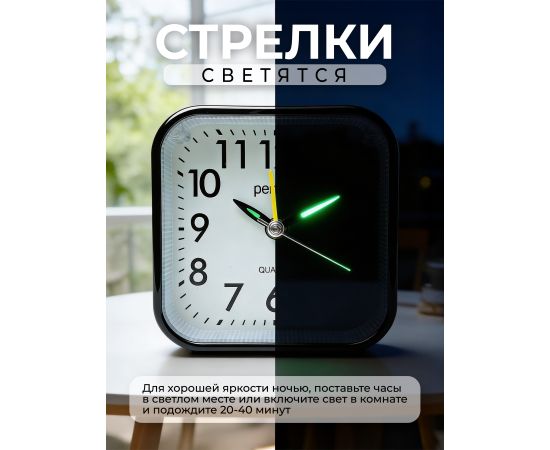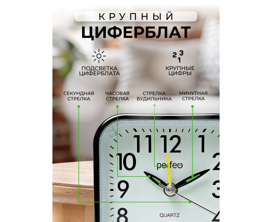 Часы-будильник Perfeo Quartz "PF-TC-028", квадратные с подсветкой, черный, (Арт. PF_C3155)