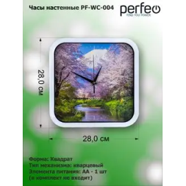 Настенные часы Perfeo "PF-WC-004", квадратные 28*28 см, белый корпус / белый циферблат