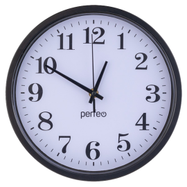 Настенные часы Perfeo "PF-WC-003"(С2), круглые д. 30 см, чёрный корпус / чёрный цифер...