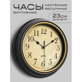 Настенные часы Perfeo PF-WC-022 (С1) PF_E2069 круглые д 23см, коричневый корпус/бежев...