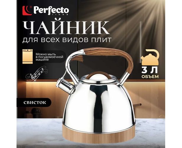 Чайник PERFECTO LINEA со свистком 3 л Ceylon 52-330001 предназначен для использования в офисе или дома.
