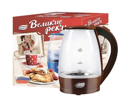 Чайник Великие Реки Дон-1 1,8л, стекло, коричневый, 1850Вт