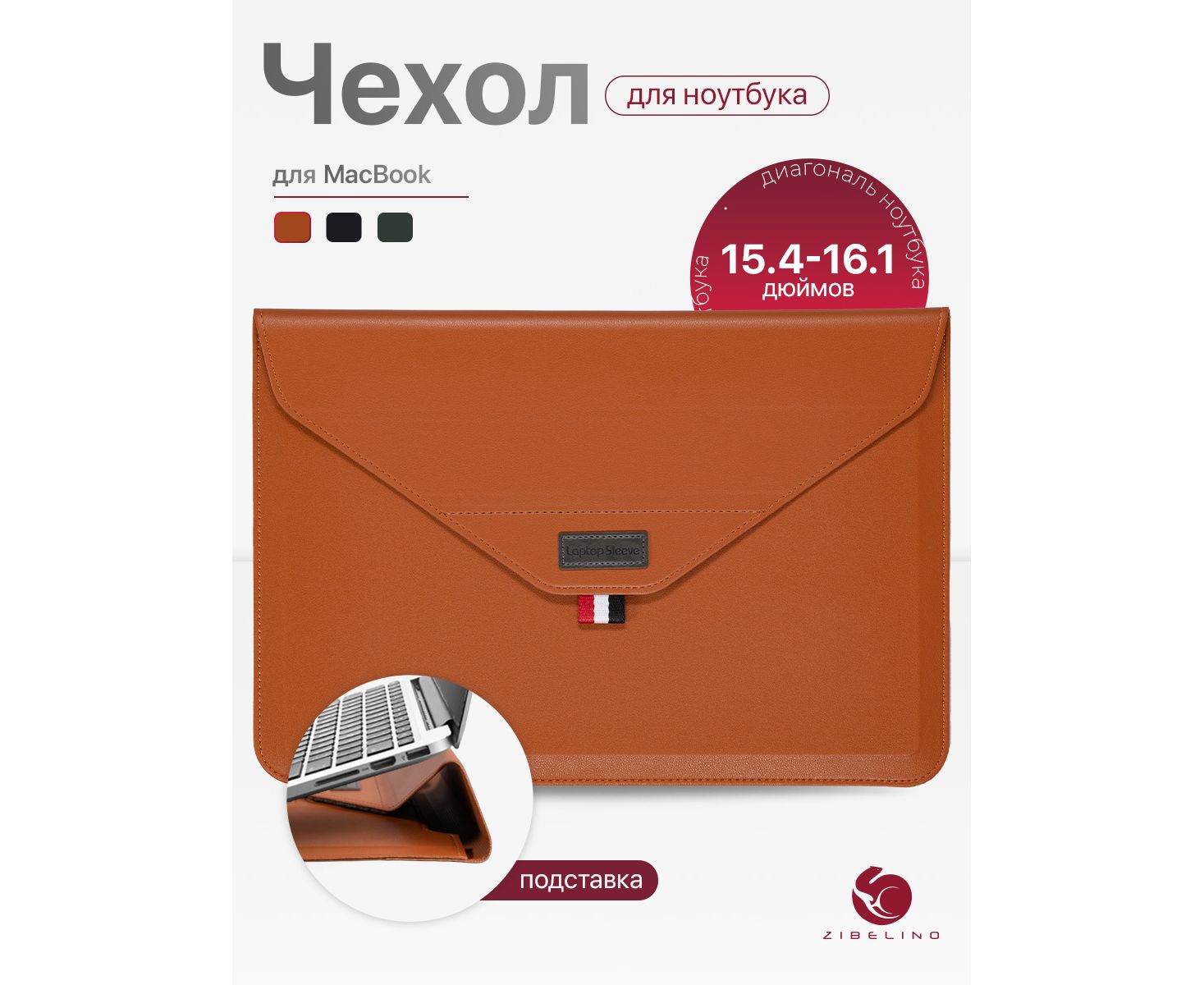 Чехол для ноутбука для MacBook Pro, Air, и планшетов Samsung, Xiaomi, KENSHI, Tecno, Teclast, Lenovo (диагональ 15.4-16.1") с регулируемой подставкой, с застежкой на липучке, коричневый (сумка портфель для макбука)