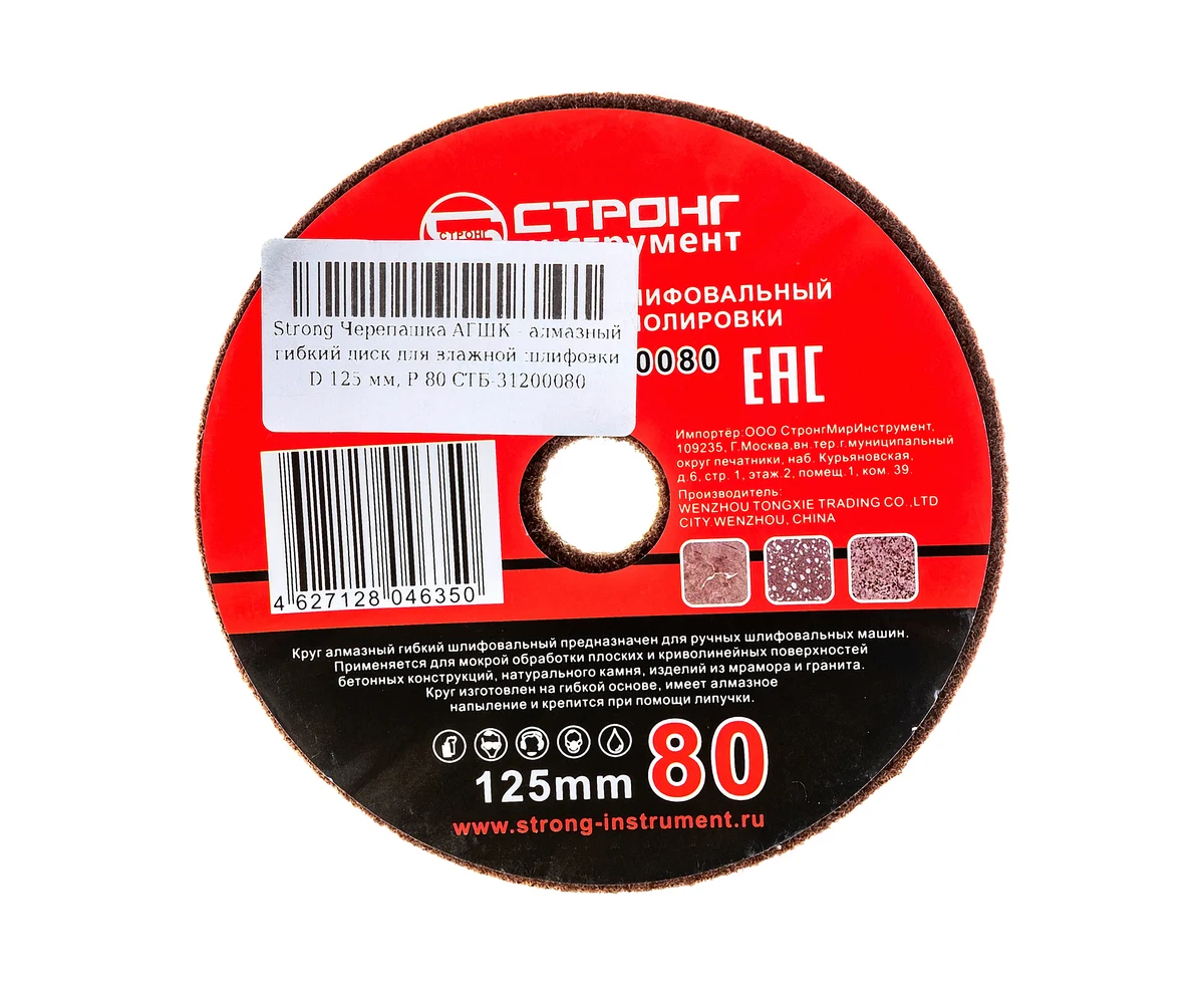 Черепашка АГШК - алмазный гибкий диск для влажной шлифовки Strong СTБ-31200080 D 125 мм, P 80