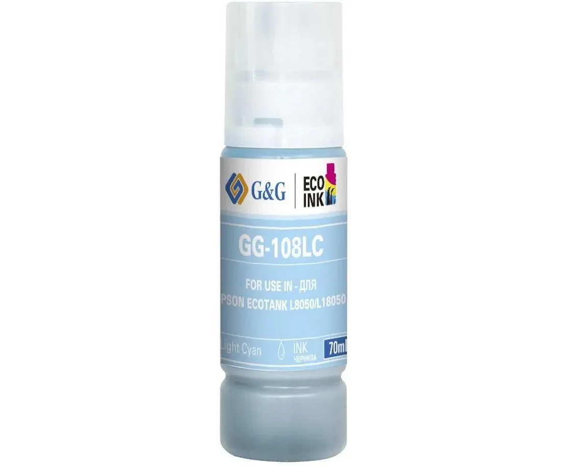 Чернила G&G GG-108LC C13T09C54A светло-голубой70мл для Epson Ecotank L8050/L18050