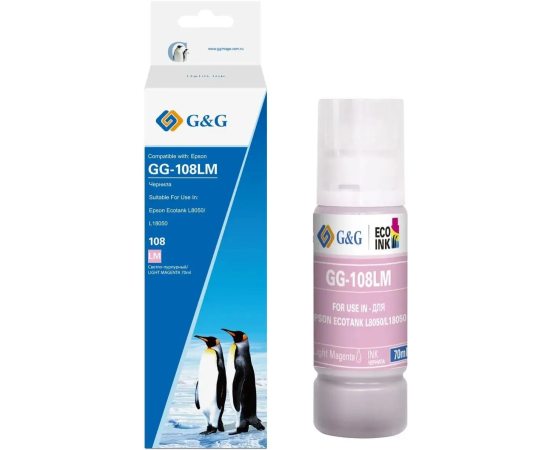 Чернила G&G GG-108LM C13T09C64A светло-пурпурный70мл для Epson Ecotank L8050/L18050