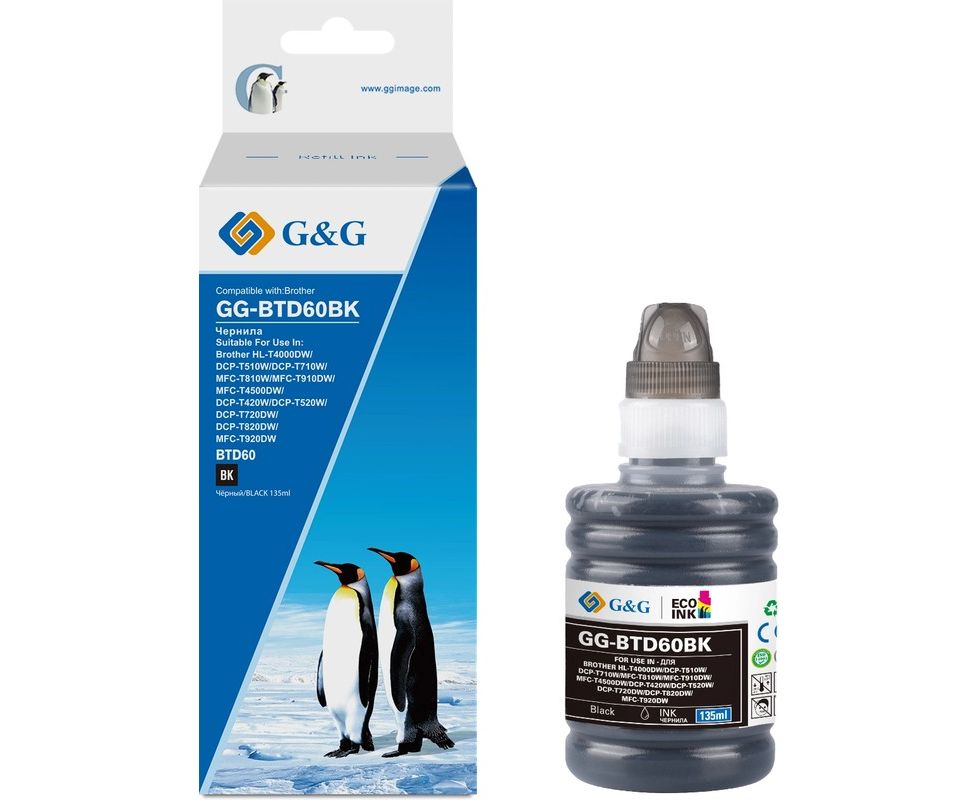 Чернила G&G GG-BTD60BK черный135мл для Brother HL-T4000DW/DCP-T510W/DCP-T710W/MFC-T810W