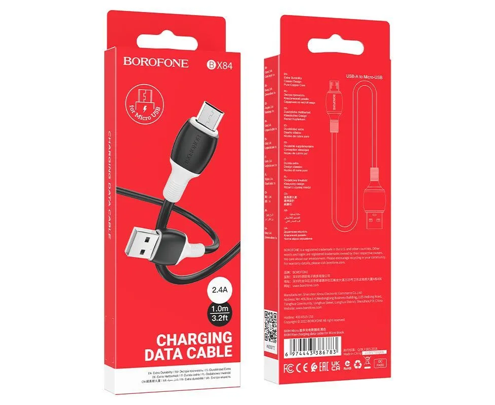 Дата-кабель BOROFONE BX84 Rise charging data cable Micro 1м (чёрный)