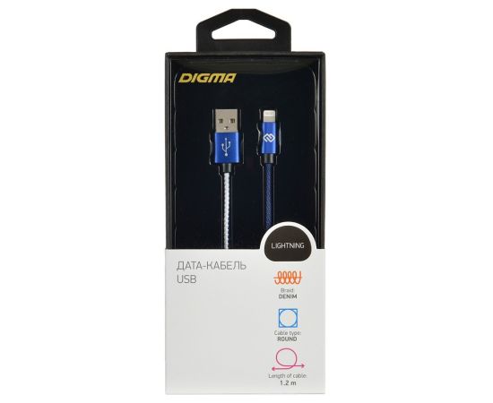 Дата-кабель Digma Lightning 1.2м синий