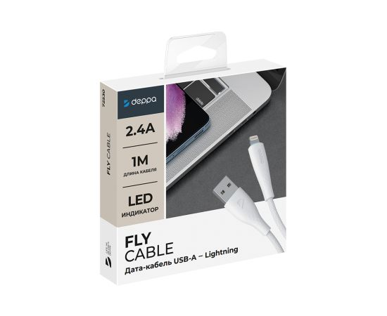 Дата-кабель Fly USB - Lightning, 1м, белый, Deppa
