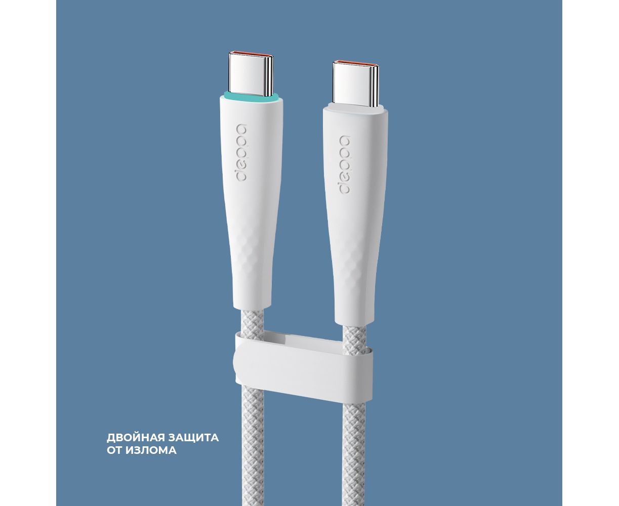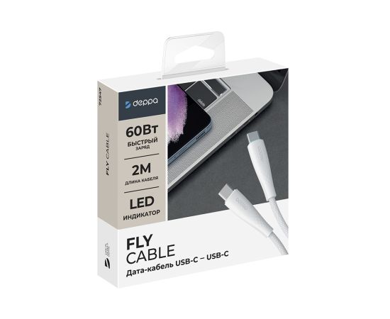 Дата-кабель Fly USB-С - USB-С, 60Вт, 2м, белый, Deppa